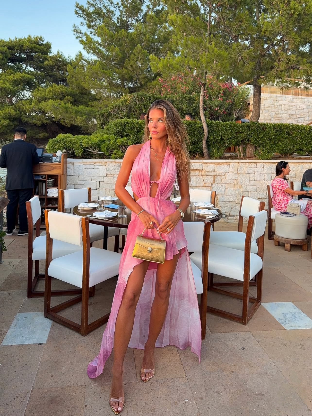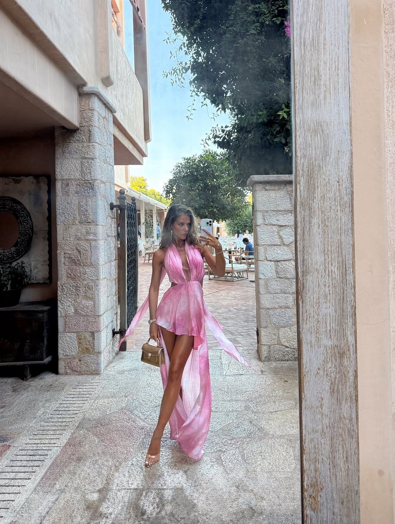 The Hallie dress was made for sun-soaked escapes, a perfect blend of flirty elegance and timeless femininity. Crafted from a soft, breathable Viscose that drapes gently over the female figure, effortlessly accentuating your every curve. With each step, it whispers of summer's playful allure. The delicate halter straps and graceful plunging neckline beautifully embrace your silhouette, while the romantic asymmetrical hemline creates a high-low effect that dances with the breeze. Hallie is the epitome of effortless sophistication, designed to captivate and enchant, making her the perfect companion for your European getaway.
